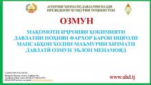 МАҚОМОТИ ИҶРОИЯИ ҲОКИМИЯТИ ДАВЛАТИИ НОҲИЯИ ФАРХОР БАРОИ ИШҒОЛИ МАНСАБҲОИ ХОЛИИ ЗЕРИН ОЗМУН ЭЪЛОН МЕНАМОЯД